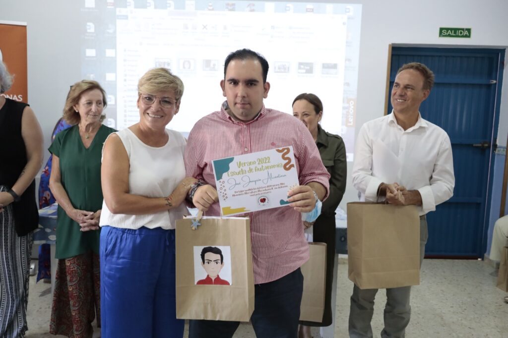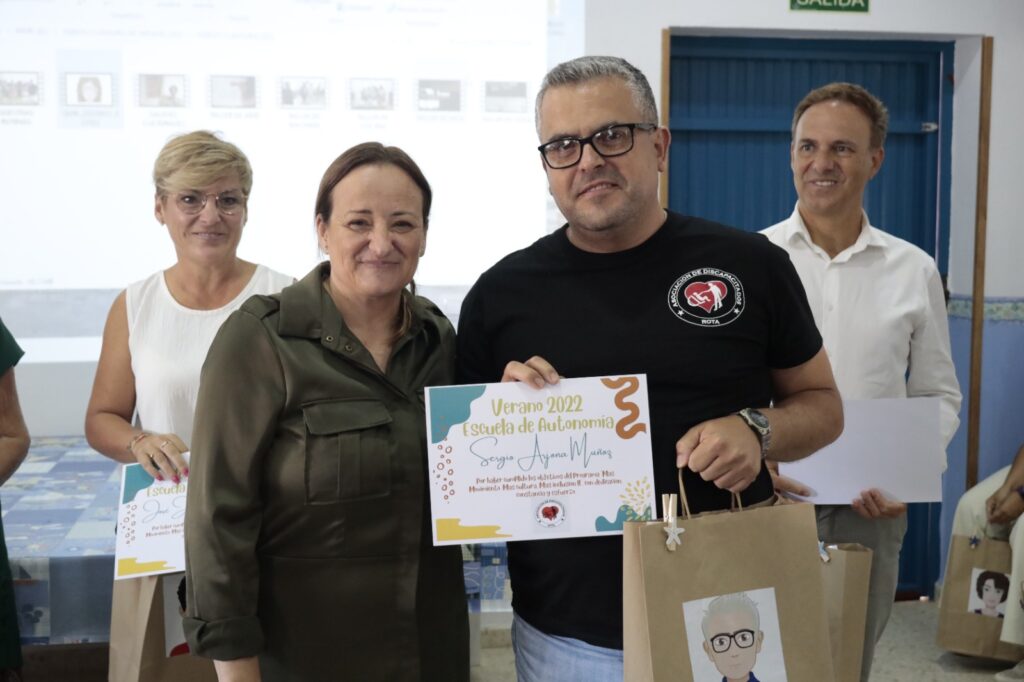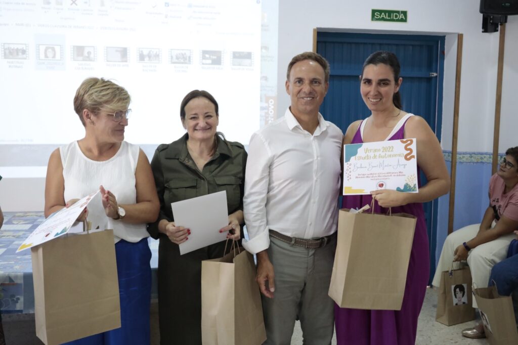 El diputado de Bienestar Social, David de la Encina, junto con la teniente de alcalde y diputada provincial, Encarna Niño Rico, y la delegada de Igualdad, Luisa Fernández, han participado en la entrega de diplomas y clausura de este proyecto que la asociación ha desarrollado este verano con la colaboración del área de Presidencia de la Diputación de Cádiz.
